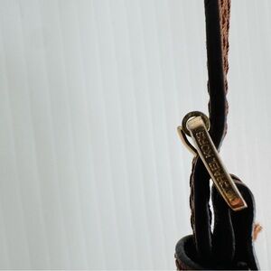 Stylish tan crossbody bag. Accented with a gold chain strap. Ideal for versatile wear.