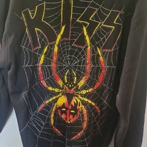 Black hoodie featuring a bold KISS logo in red and yellow. Perfect for fans.