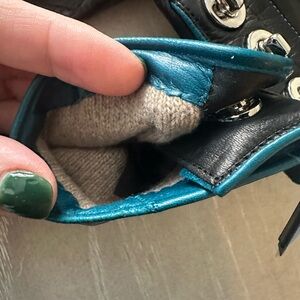 Coach Elegant black leather gloves. Features silver button accents. Stylish and sophisticated. Cashmere lining size 6.5