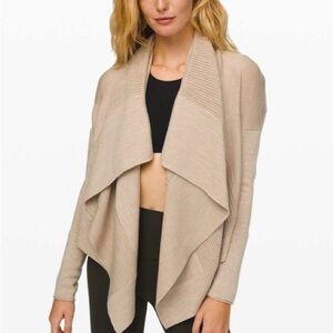 Stay cozy and stylish with this elegant beige open-front sweater. Perfect for layering, it offers a chic and comfortable fit for any occasion. Excellent condition Lululemon Sit in Lotus Cardigan sweater size medium. This is reversible as shown in pictures.