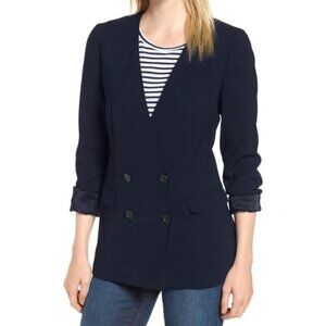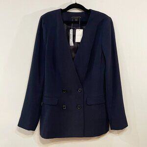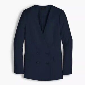 New J.Crew Collarless Double-Breasted Crepe Blazer Navy Blue 2 $298