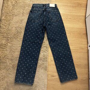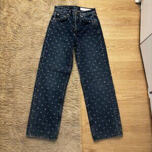 The Shea. Ankle-length high-rise jeans are designed with relaxed, straight legs. Crafted from Lightweight Rigid non-stretch denim that provides structure, but breaks in over time for a soft and comfortable feel. In Vintage Tweed, the perfect dark indigo wash with an all-over textured motif pattern inspired by tweed. They are: