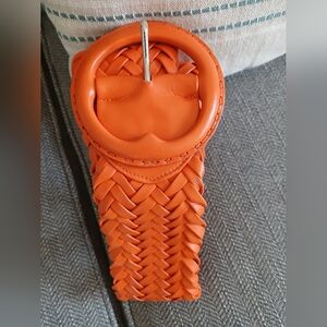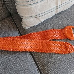Braided/Woven design, leather, rounded buckle.