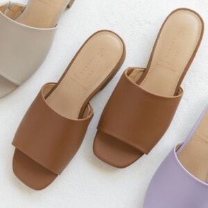 🆕New LC Lauren Conrad Ilana Women's 1-Band Stacked Heel Slide Sandals-Brown