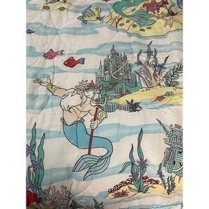 Vintage Disney The Little Mermaid comforter featuring Ariel, King Triton, Flounder, Sebastian, and classic underwater scenes. A colorful, nostalgic piece perfect for Disney collectors, themed bedrooms, or vintage bedding lovers.