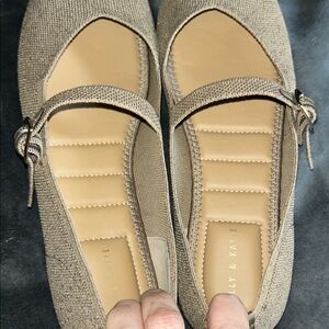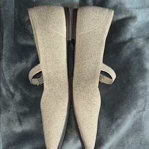 Chic Mary Jane flats with a taupe finish. Comfortable and stylish for everyday wear.