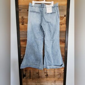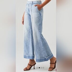 "The Avery" Wide Leg Denim Trouser With Cuffed Hem