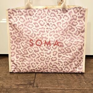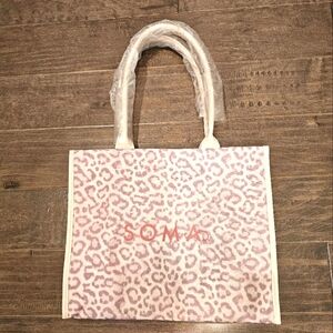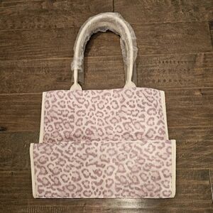 New without tags, this canvas tote is a perfect size, as well as durable. Handles are still wrapped in plastic. Leopard print with snap closure.