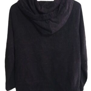 Stylish black zip-up hoodie with drawstrings. Perfect for casual wear. 25 inches top of shoulder to bottom.