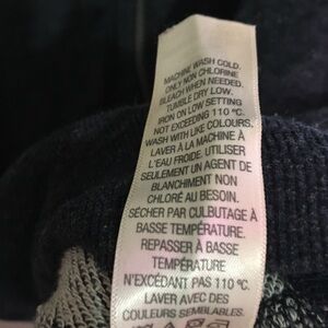 Navy blue. Machine washable. Has some light blue stain on the inside of sweatshirt but in good condition other than that.