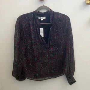 LOFT Women's Black and Green Floral Blouse