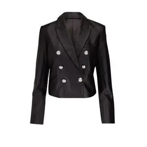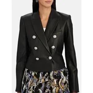 Veronica Beard Nevis Black Leather Cropped Jacket size 6