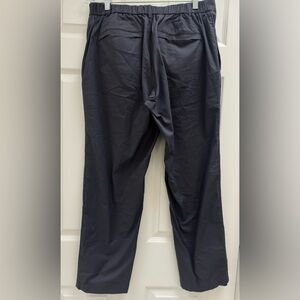 These Tommy John pants are a stylish and versatile choice for men in size 36/37 inseam 29 with a dark Grey color and tech fabric that features micro ripstop design. The pants have a mid-rise, straight leg fit for a comfortable and modern look. They are made from a blend of polyester and spandex for moisture-wicking and stretchy properties, perfect for all seasons. The pants also come with slash pockets and an elastic waist for added convenience and comfort. Ideal for travel, casual wear, and everyday use, these pants combine functionality with a sleek design from a reputable brand. Sleek and modern chinos. Perfect for versatile styling. Comfortable fit.