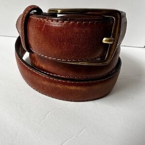 Tommy Hilfiger Brown Leather Belt Men’s 35-37 Brass Tone buckle Work Casual