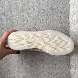 Chic Adidas sneakers in cream and tan. Ideal for everyday style.