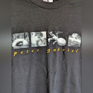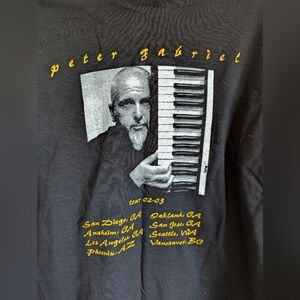 This Peter Gabriel Tour 02-03 Black Tee features a simple yet striking graphic design across the chest, crafted from soft cotton for everyday comfort. Ideal for casual outings, its crew neck style ensures a classic fit.