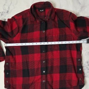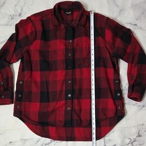 Madewell Plaid Red and Black Flannel Side-Button Oversized Ex-Boyfriend Shirt