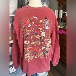 Nice thick sweatshirt with beautiful floral design. Nice dusty rose color. New without tags.
