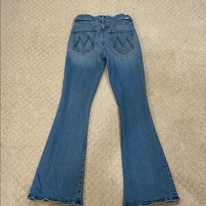 This cult-favorite flare jean has a mid rise with a 31-inch inseam and a clean hem. Made from stretch denim, Read Between the Lines is a mid-blue wash with whiskering and fading throughout. Pairs well with a spotty Wifi connection and airport snacks.