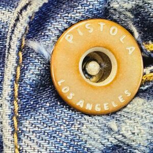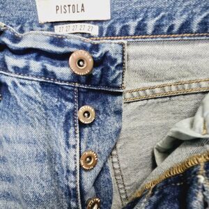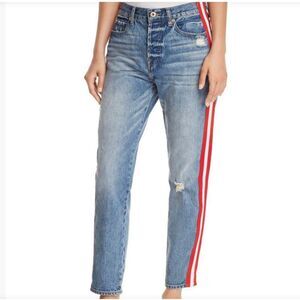 NWOT PISTOLA DISTRESSED WHISKERED RED WHITE SIDE STRIPE DENIM BLUE JEANS SIZE 27