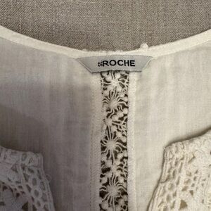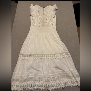 St. Roche Flutter Sleeve Tiered Midi Swing Dress Sz 2 Lace Organic Cotton Ivory
