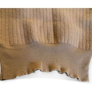 An authentic, luxurious Christian Dior knit top. This sweater features a beautiful vertical ribbed texture and a fitted silhouette with a flattering wide rib-knit waistband that has a slight lettuce-edge hem.