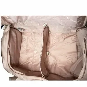 ◦ Pale pink duffle bag with 42L capacity - Packable Design – The duffel folds down into a compact size, making it easy to store or carry when not in use. Perfect for travel efficiency.