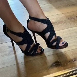 Step out in style with these elegant black strappy heels. Perfect for any occasion, these shoes offer both comfort and sophistication.