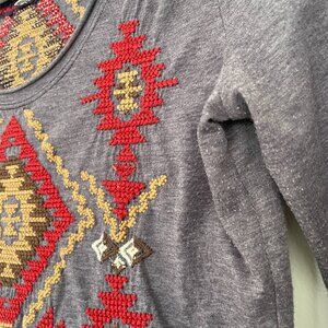 Johnny Was Aztec heavy embroidery tunic tshirt top