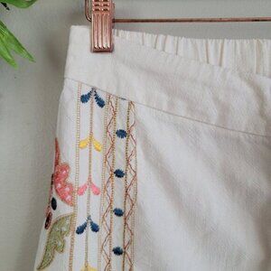 Anthropologie S Boho Straight Wide Leg Capri Floral Embroidered Cropped Pants