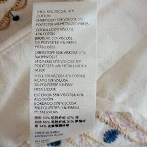 - ivory off white, pink, blue, green, yellow, red with metallic gold stitching embroidery