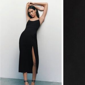NWT Zara Cross Strap Black Sheath Midi Dress