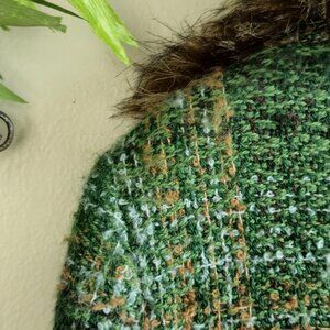 Harve Bernard Fur Collar Wool Blend Green Tweed Blazer Jacket