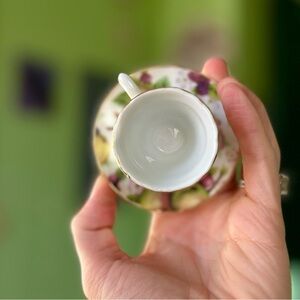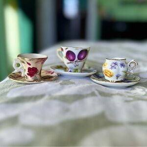 VTG Mini Porcelain Tea Cups Attached Saucers Trinket Cottagecore Floral Set x3