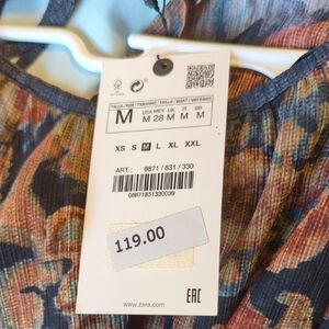 New with tags ZARA long-sleeved midi dress featuring a multicolored floral/paisley print and a flattering elasticated waist. Lightweight and flowy with an easy pull-on style—perfect for everyday wear, brunch, or transitional seasons.