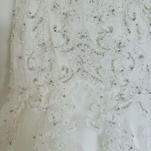 Stunning white wedding dress with intricate lace details. Perfect for a special day.