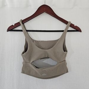 ALO Yoga Ribbed Slit Sports Bra in Gravel Tan Brown Women’s Size M