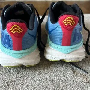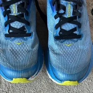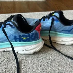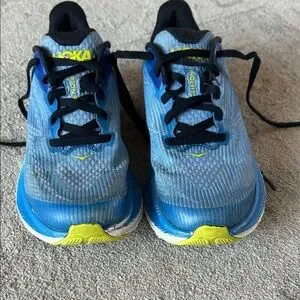 Used pair of boys Hoka Clifton shoes. Size 3.5. I tried to take pictures were wear is shown. Plenty of tread left. Plenty of life left. My son had to size up recently. Very comfortable and stable shoe. Smoke free home.