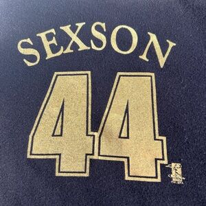 Super cute Mariners tshirt. Hard to tell in the photos but the lettering is sparkly gold. It’s a size medium but fits more like a small. In great condition no holes or stains. Smoke free hypoallergenic dog friendly home.