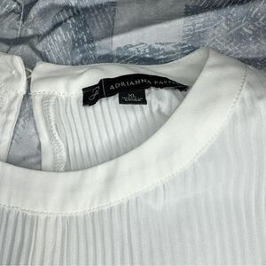 Adrianna Papell White Pleated Georgette Crepe Blouse Size XL