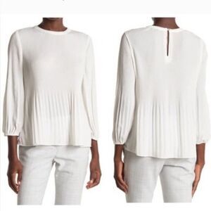 White Pleated Georgette Crepe Blouse Size XL- Adrianna Papell