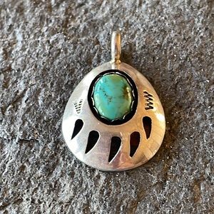 Vintage Native American Navajo Bear Paw Turquoise Pendant