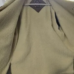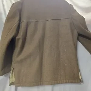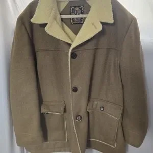 Stay warm and stylish with this men's brown sherps jacket featuring a cozy cream collar. Perfect for chilly days. Excellent shape for its age.