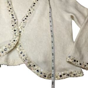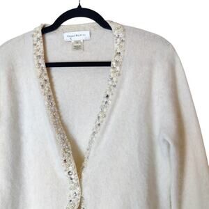 Vtg Susan Bristol Cream Angora Hair Jeweled Preppy Cardigan Sweater Old Money XL