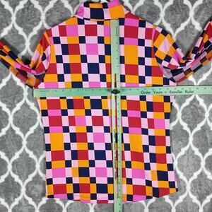 IBKUL Shirt Womens Medium Pink Orange Check UPF 50+ Long Sleeve Golf Mock Neck