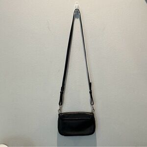 Elegant black leather crossbody with signature logo. Adjustable strap for comfort. The bag measure’s 8”x5” and the longest strap adjustment can be 21”, 2 shorter strap adjustments. This cute bag is perfect, for your credit cards, three slots inside for those. Plenty of room for your phone and lip gloss too. It’s in really, really good condition, used 2-3 times. Purchased at Saks Fifth Ave. over 15 years ago, you could consider this a Vintage bag.