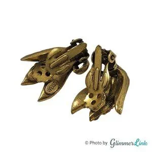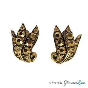 VTG Weiss Aurum Metallic Rhinestones Triple Leaf Bronze Tone Clip On Earrings