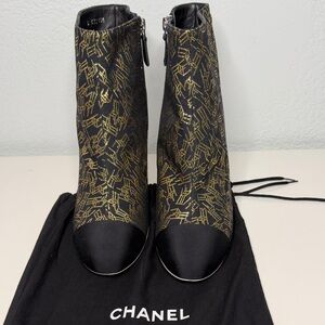 Chanel Black and Gold Ankle Boots