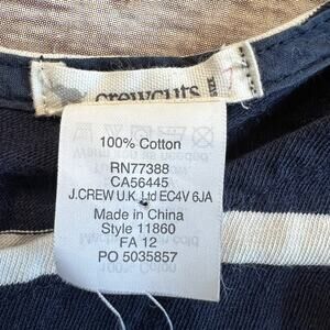 Size 7, Crewcuts, navy blue and white striped maxi dress. Long sleeves and pockets. Cute button detail on bottom hem. Keyhole with button at the back of the neck. No stains or flaws, very good used condition.