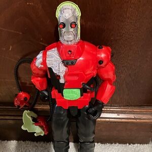 Super cool Action Man villain who is clearly part Cyborg! (Push the green button to 'snap' off his armor pieces and reveal the robot underneath!)